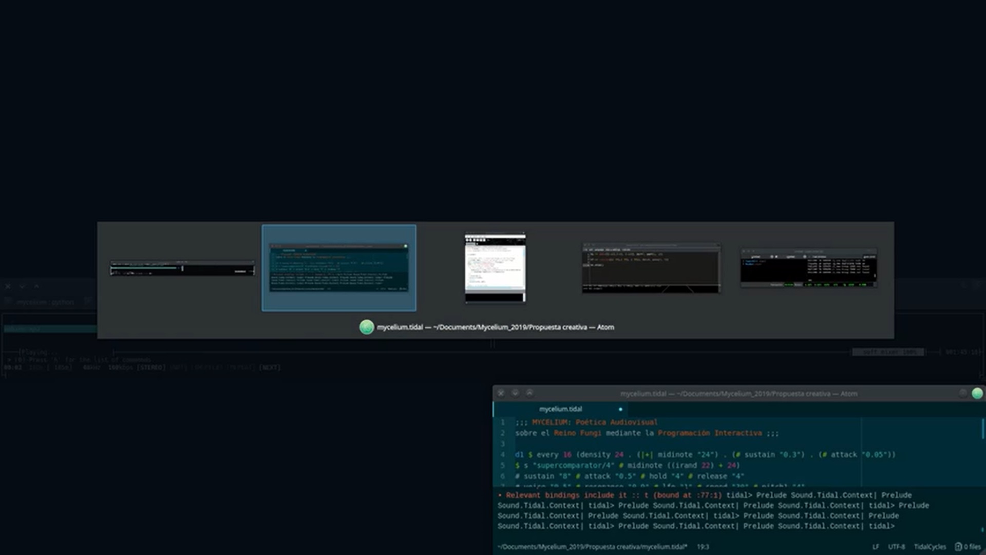 Propuesta audiovisual inspirada en el fenómeno natural del micelio, paradigma multiversal del Reino Fungi que permite la interconexión multiespecies en el planeta tierra.En la escena general se puede observar una simulación del crecimiento del micelio programada para modelar el mapa de la ciudad de Valdivia, Chile. Territorio de bosque templado humedo quepermite la mayor proliferación de la funga en Chile.