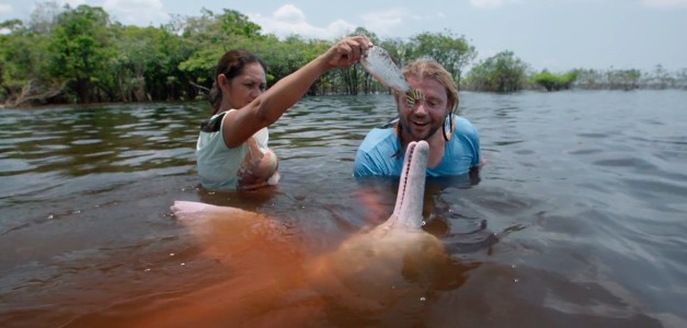 Río Abajo sigue a una estrella de televisión y a un renombrado biólogo marino mientras intentan salvar de la extinción, al delfín rosado del río Amazonas. Por medio de tomas panorámicas espectaculares, se logra una perspectiva desde arriba, en donde se ve la realidad de la región. A medida que la película se hunde profundamente entre ríos turbios y enmarañados, descubrimos un escándalo sin solución. Río Abajo es una película imprevisible, un poema nudoso de dualidad y disonancia, que representa un viaje de introspección, mientras intentamos mejorar este mundo.